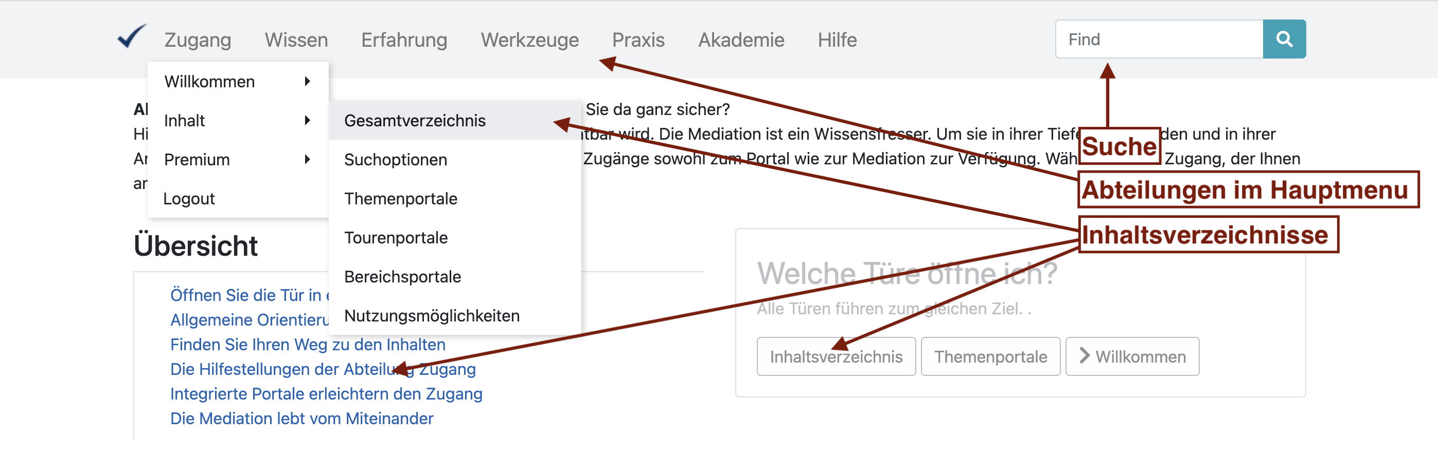 Hauptenu Zugang